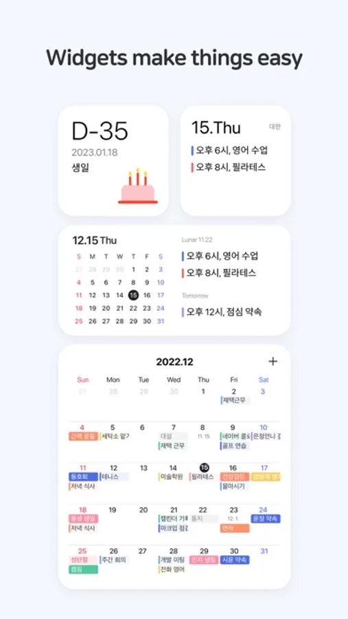 With today/monthly/timetable/list/D-Day Widget/ IOS 16 Lock Screen Widgets, you can simply check your schedules.