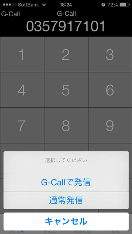 3.発信をタップし、<G-Callで発信>を選択。