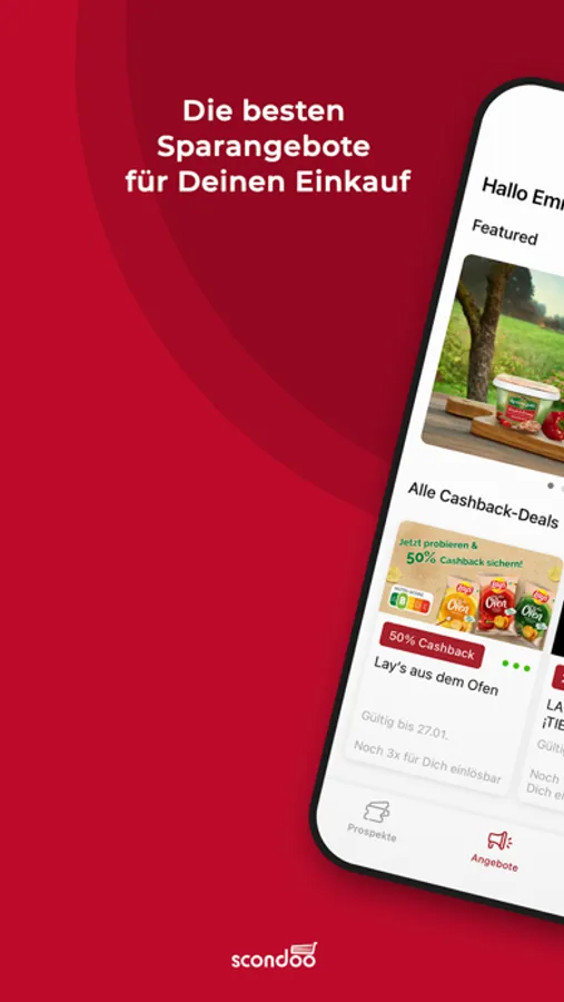"Mit der scondoo App bekommt ihr mit der sogar noch Geld zurück. Bereits vor eurem Einkauf könnt ihr in der App Cashback-Deals entdecken und im Supermarkt oder der