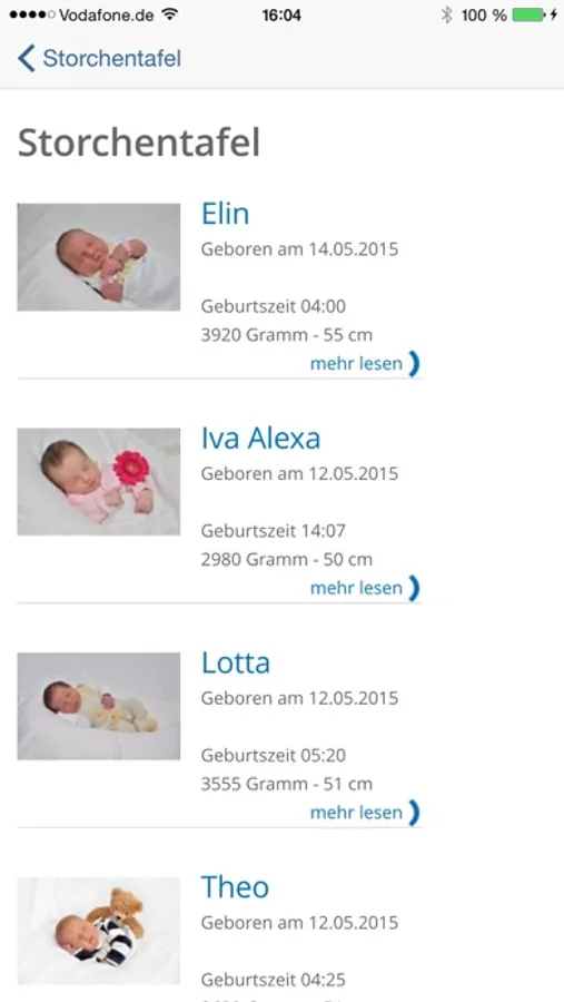 Die Storchentafel der Klinik ist ebenso Bestandteil der App wie ergänzende Nachrichten rund um's St. Marien-Krankenhaus Siegen.