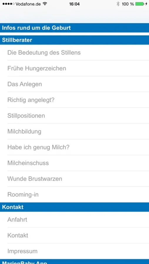 Weiterhin bietet die Applikation werdenden Eltern Informationen zur Schwangerschaft und dem Wochenbett, gibt in einem kleinen Glossar Antworten zu wichtigen Fragen und zeigt eine Übersicht zu den angebotenen Sprechstunden und Veranstaltungen der Klinik. Der umfangreiche Stillberater gibt jungen Müttern wertvolle Hinweise und Tipps rund um's Stillen.