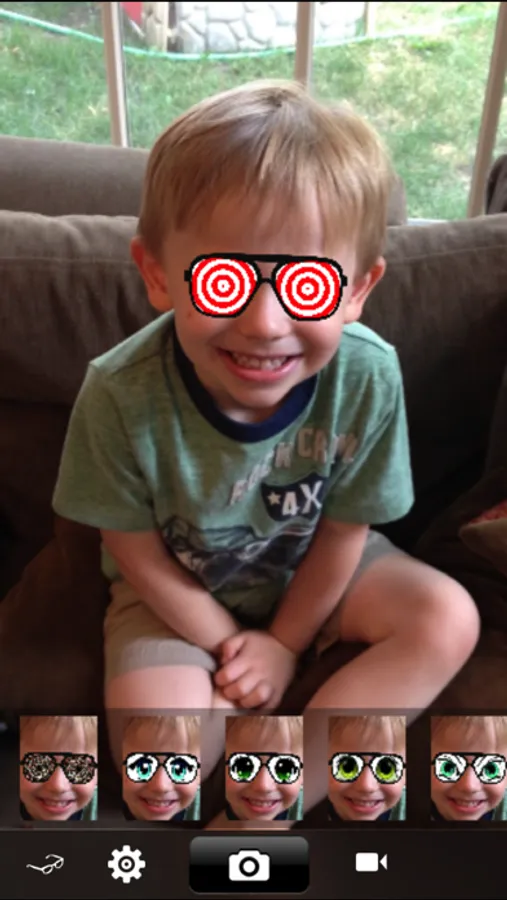 Effects include: evil eyes, x-ray specs, pretty eyes, cross eyes, statue, cat, googly eyes, anime eyes, lizard, tiger, colored lenses, 3-D glasses, bug eyes, static, and many more.