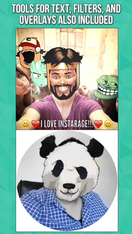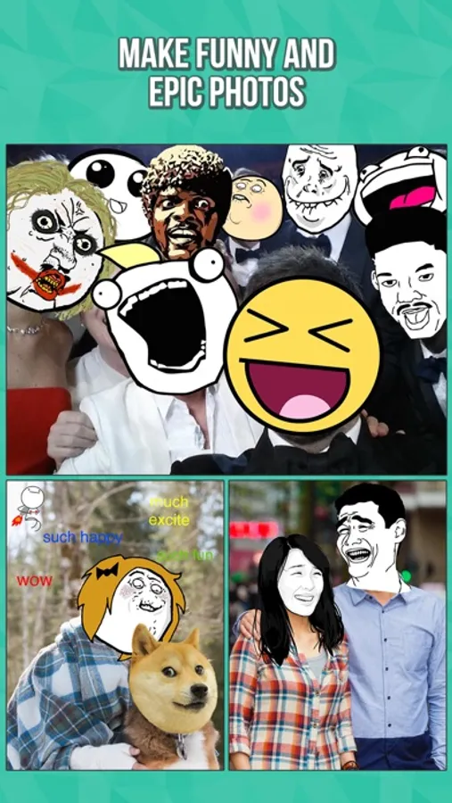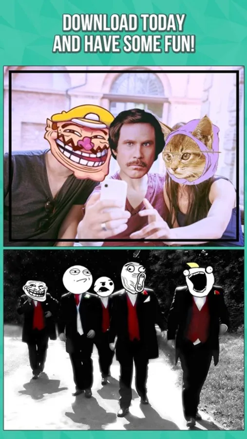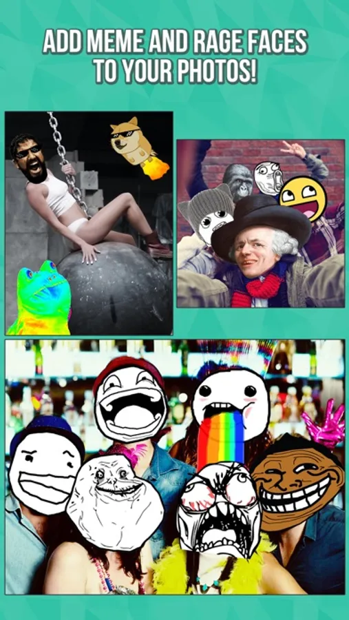Use InstaRage to add some fun to your photos and bring popular memes to life! Give your grandma that Challenge Accepted Face or Troll your friends with a trollface!
