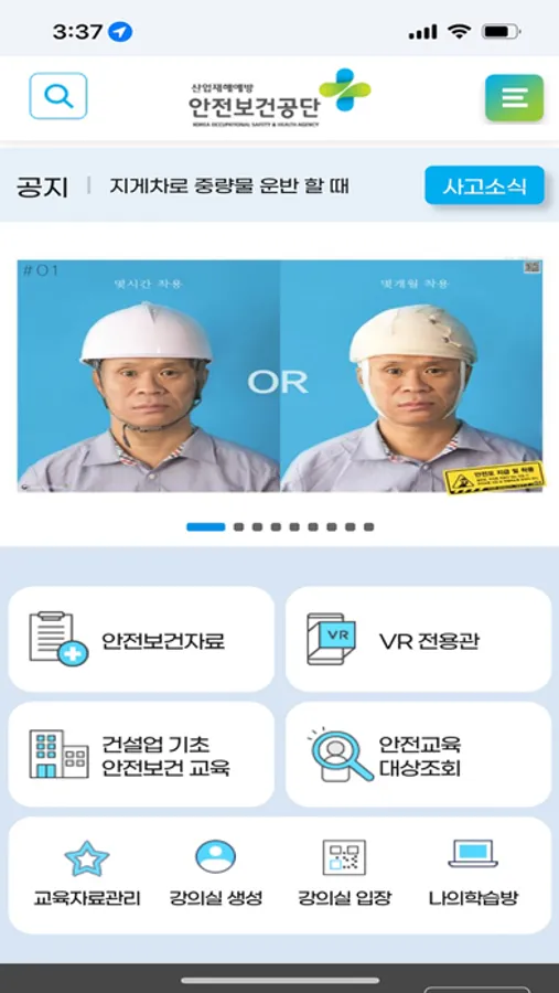 ④ 안전보건교육자료 : 산업안전 재해사례, 전자책, 동영상 등 안전 보건 자료 제공