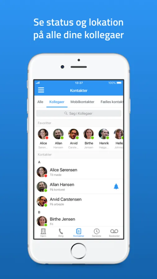 - En intelligent kontaktbog med statusvisning af dine kollegaer