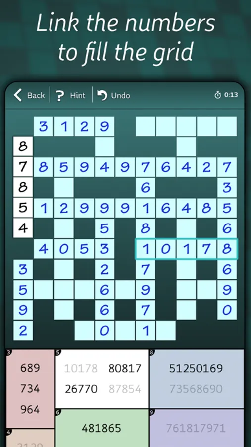 Number Cross puts your deductive skills to the test! Also known as number fill or number fit, each puzzle gives you an empty grid and a list of numbers. Each number fits in just one place in the grid and it is up to you to figure out where. No arithmetic required - all you need are your logical problem solving skills!