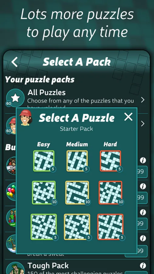 Astraware Number Cross offers 60 built-in puzzles in 3 different grid sizes and 3 different difficulty levels so you can keep playing even after completing the Daily puzzles! If you are a big fan of Number Cross, you can get extra puzzle packs to keep you going.
