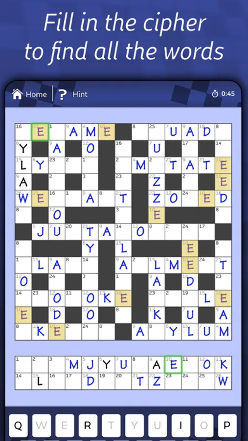 Astraware CodeWords is an addictive word puzzle game with a difference! You start with a crosswords style grid but instead of words, each letter has been substituted with a number from 1 to 26. It is up to you to figure out which number stands for each letter!