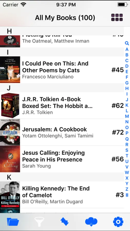 - sorting your book database by Original title, Title, Book Number, Date read or Year