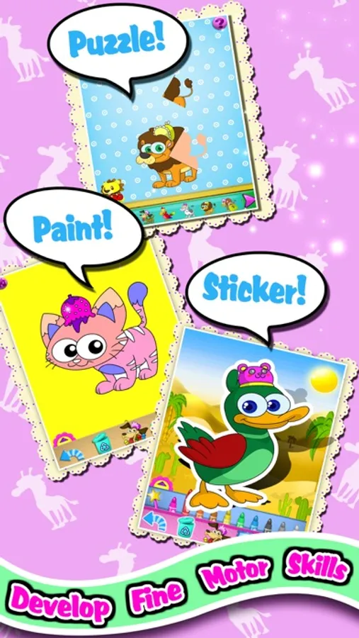 > Puzzle Game - Enjoy 72 intuitive puzzles of these adorable animals. put the puzzles together over and over again.