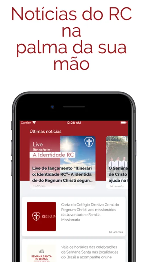 Tenha todas as orações disponíveis em qualquer hora e lugar, acompanhe o dia a dia de sua localidade por meio de notícias e das redes sociais e receba avisos sobre o que acontece no Regnum Christi Brasil.