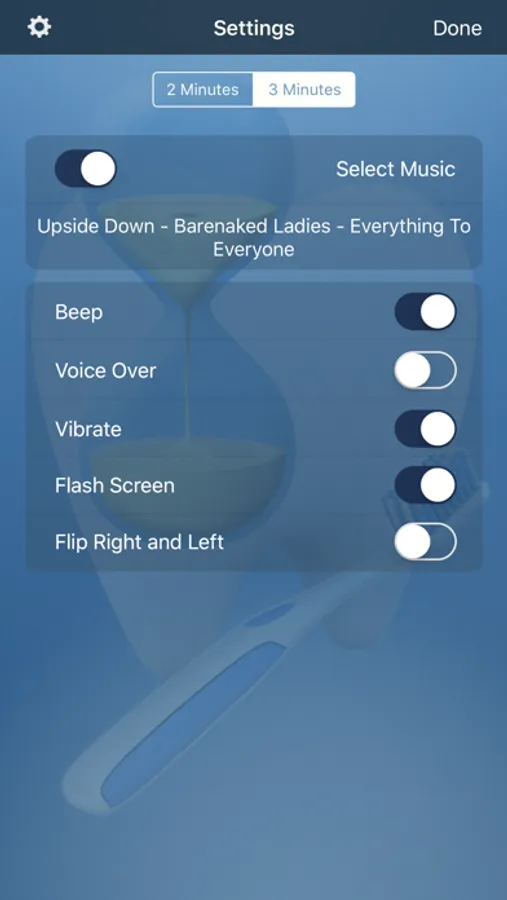 Let's Brush gives you a choice between two or three minutes of brushing time.
