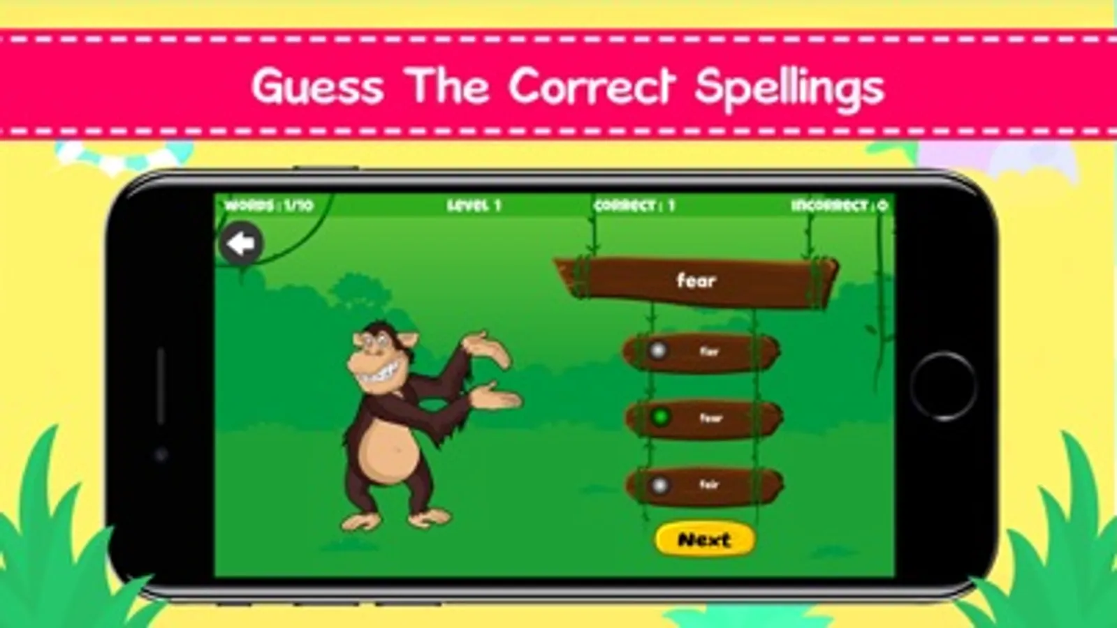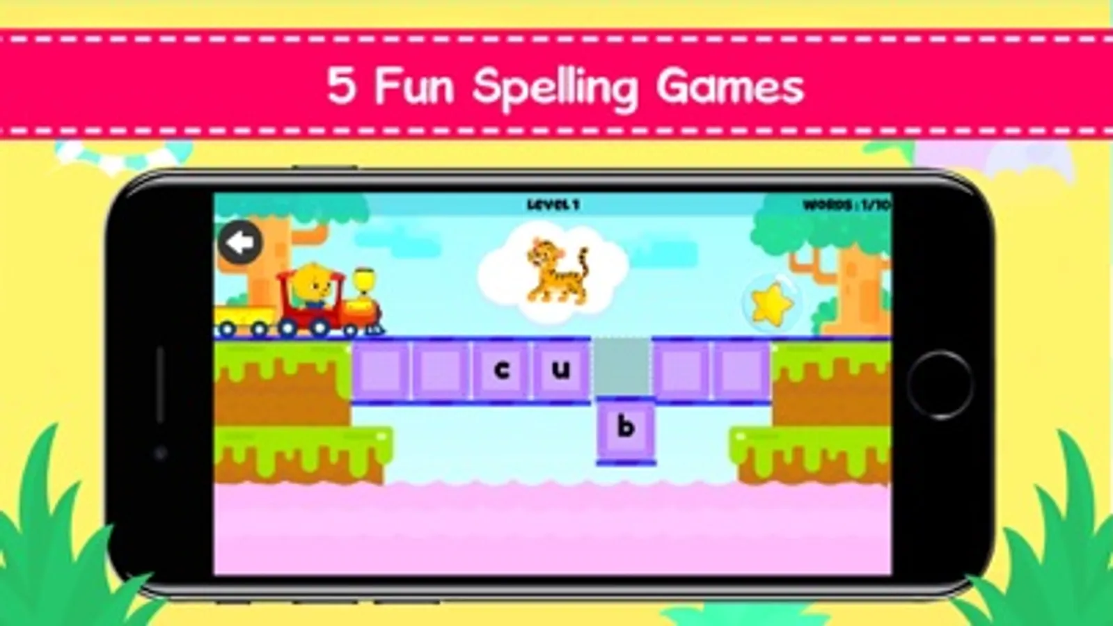 Hone your kids' spelling skills with the help of spelling games for kids. Learn 900+ spellings with kids' favorite things like balloons, trains as well as a funny Chimpanzee and Dinosaur! There's something for every kid between 4-8 years!