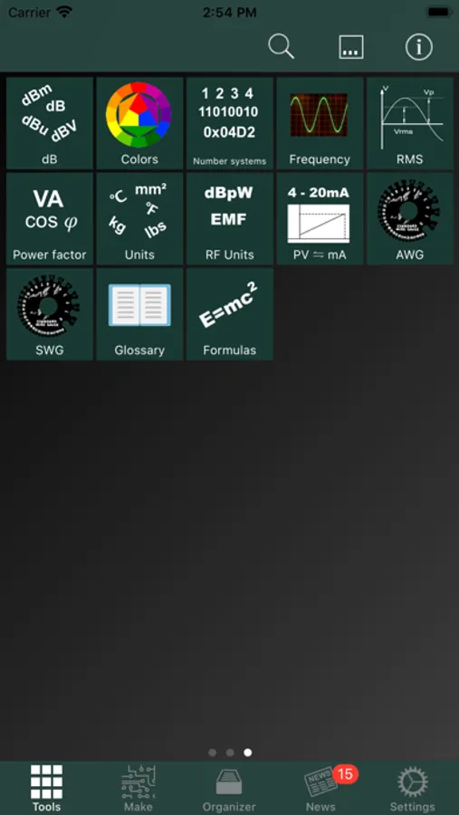 This app contains some of the common tools of Electronic Toolbox but contains a wide range of additional tools, specialized for high frequency electronics, RF professionals, radio amateurs and students.