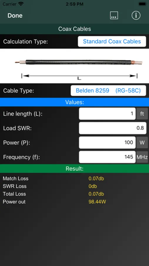 ■ Coax Cable calculation (Standard and individual Types)
