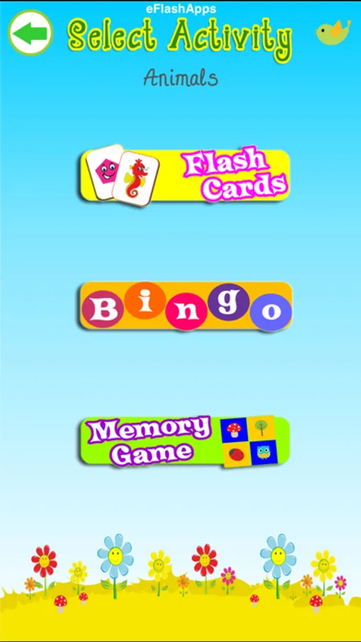* Activities: Flashcards, Tap It Right, Bingo, Memory Game