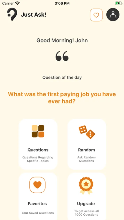 Curiosity is what drives connection. Whether you are just getting to know someone, or you have been together forever, curiosity is what keeps the spark alive. Whether you use our 1000 questions, or you add your custom questions to the app, Just Ask! has your back.