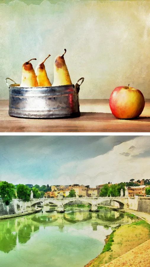 •Two professional-quality aquamedia styles: A traditional one applies fluid brush strokes and colorful washes; and a two toned one washes your image with soft color combinations