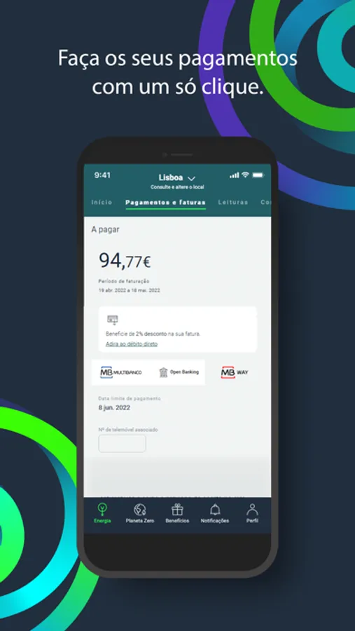- Pague de forma simples e rápido com o débito direto ou através de MB WAY ou Open Banking