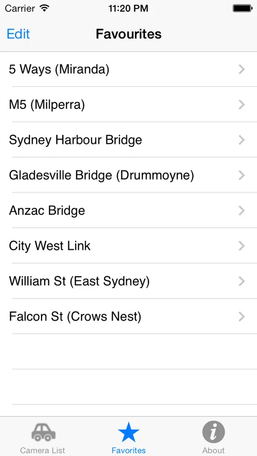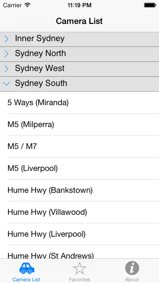 Ready to head home and you want to check the traffic? Traffic Sydney is the fastest way to get to the traffic web cams that matter to you. Instead of browsing to a web site and working your way through the menus and map graphics to find a web camera just open Traffic Sydney on your iphone and go straight to the camera you want with one click.