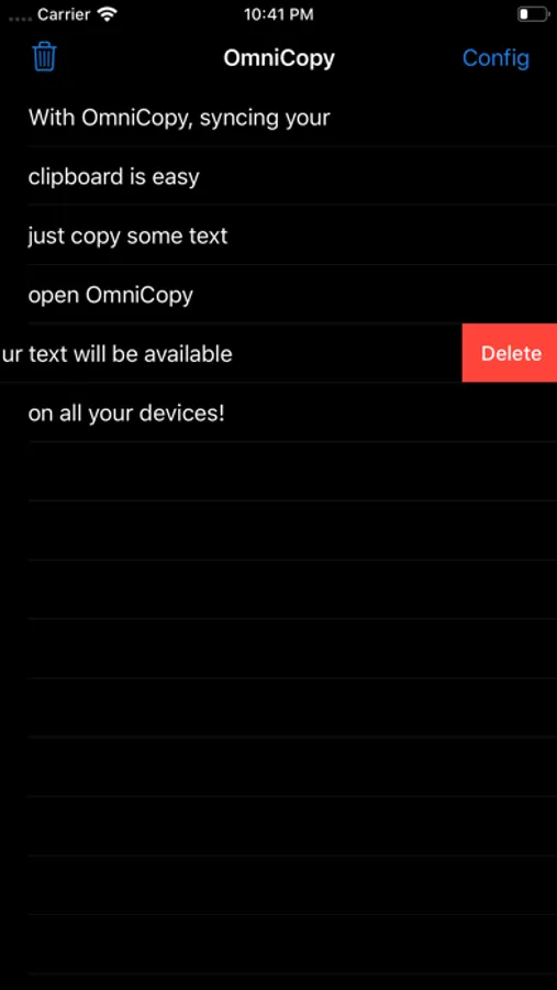 OmniCopy uses the Dropbox API. All sent and received data is encrypted. The app only has access to the Dropbox folder "Apps/OmniCopy". If you delete this folder, all access tokens turn invalid.