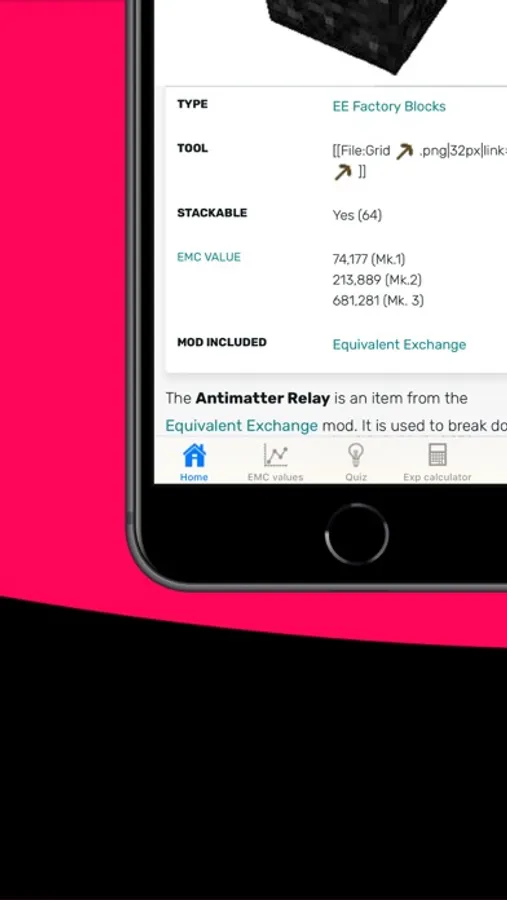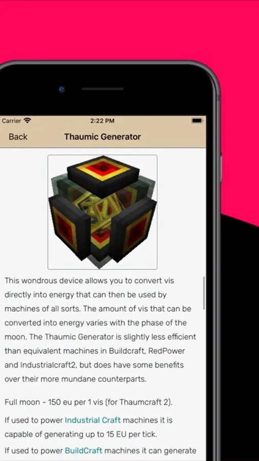 This app will help you with mods in Minecraft without having to get out of Minecraft. You can look on your iPhone/iPad/iPod and learn what is what for and how you get it.