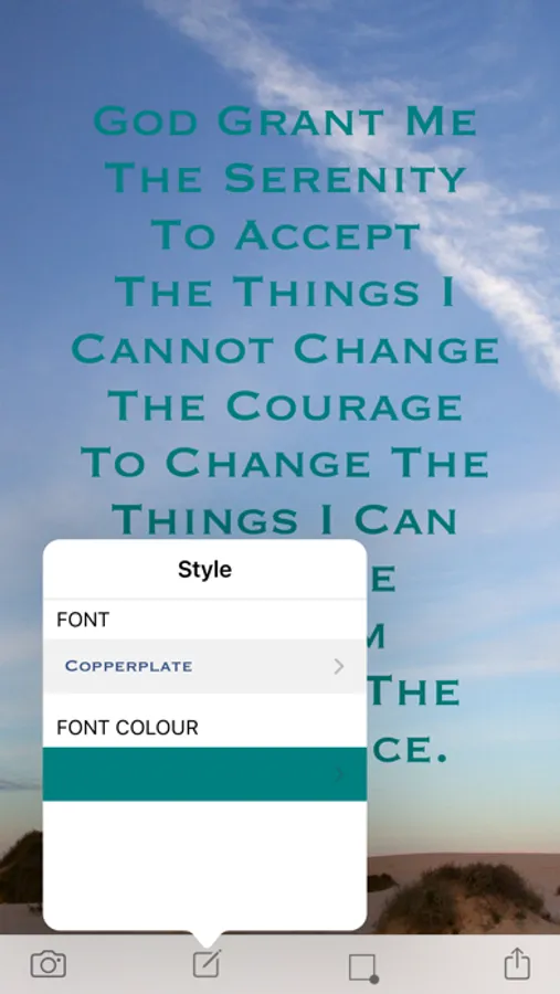 Take a moment in your day to read the Serenity Prayer. Change the images, fonts, text colours and position, to build your own special version. Share your thoughts with friends.