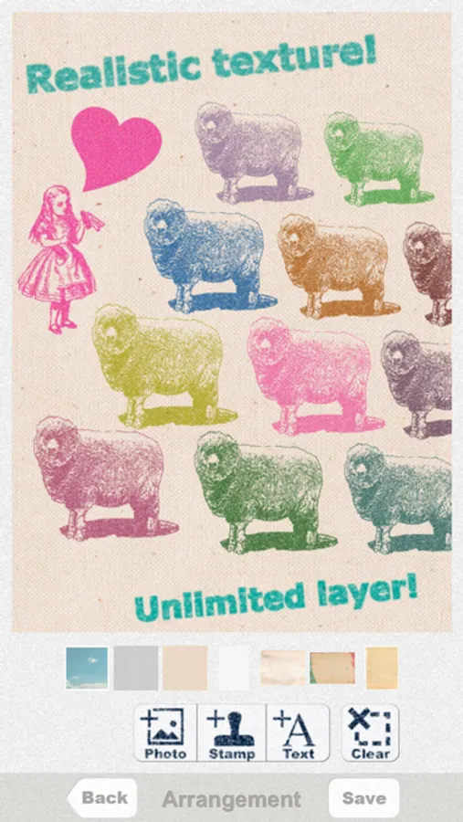Save to the "Stampgraphy" album on the iOS "Photo" app in png file format with transparency