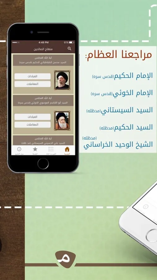 يسرنا أن نقدم لكم تطبيق (منهاج الصالحين) الذي يتضمن الرسائل العملية للمراجع العظام: