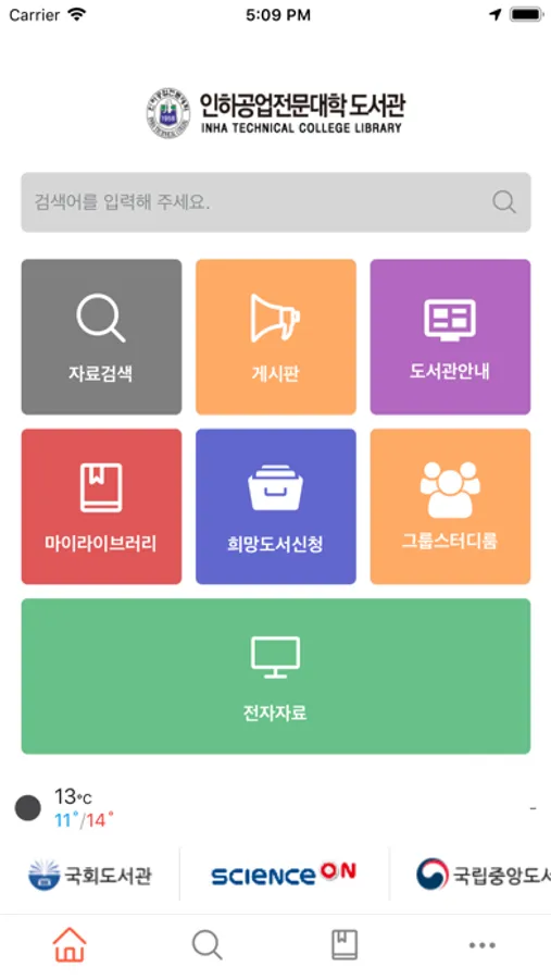 인하공업전문대학 도서관의 도서 정보 조회 및 대출정보, 희망도서를 신청 할 수 있는 아이폰용 모바일 어플리케이션 입니다.