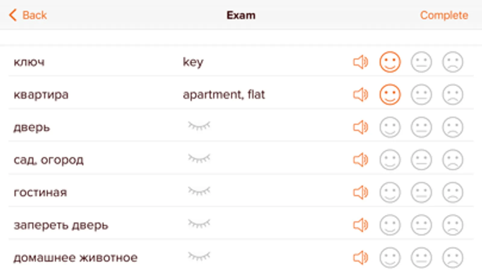 • Exam function counts % of learned words and allows you to place poorly memorized cards into Difficult group.