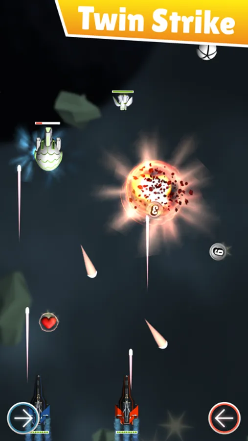 • Twin Strike - fast paced tactical space-shooter for two. Join forces with your best friend to defeat as many enemy invaders as you can!