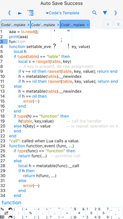 *You can save lua code and learning materials, and can be modified to the save file and delete the save file .