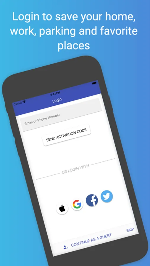 • Login via personal accounts (Apple, Google, Facebook, Twitter), Phone Number, Email Address or login as a Guest to access the full features of Kuwait Finder