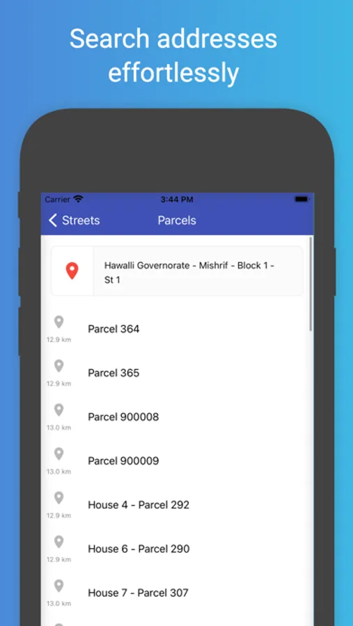 • Search for addresses effortlessly using a quick search via Governorates, Areas, Blocks, Streets and Parcels/Houses