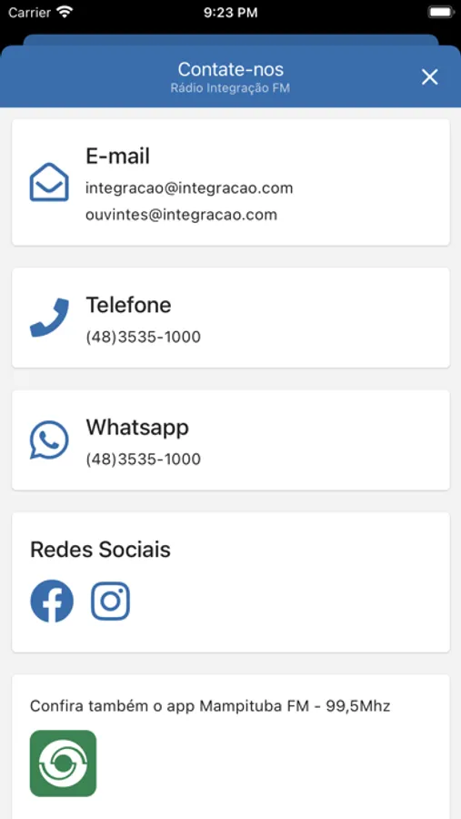 Escute a melhor rádio, participe das promoções do dia, confira as músicas mais tocadas da programação e peça sua música através desse aplicativo que reúne tecnologia e diversão! Rádio Integração FM 91,7Mhz - Jacinto Machado/SC