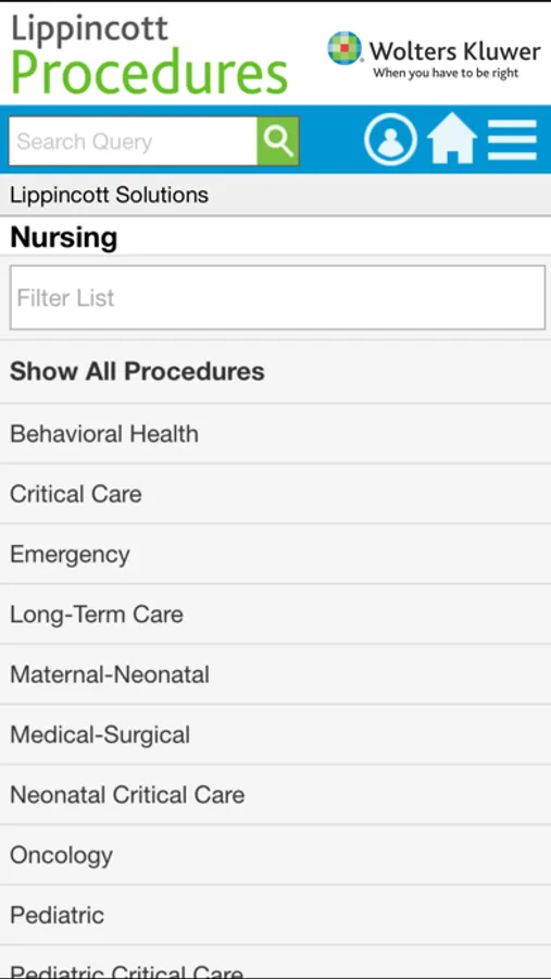 Great as a back-up in case of Internet outage, or for staff, such as home health nurses, without access to a reliable Internet connection. The Lippincott Procedures app ensures that your staff will always quickly and easily find the step-by-step procedure instructions that they rely on today.