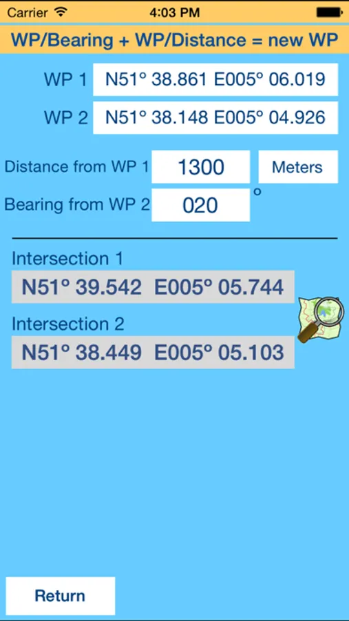 2 WPs + 2 distances = 2 new WPs (Intersections of 2 circles)