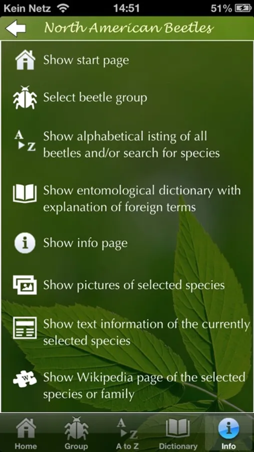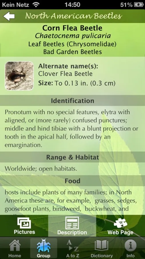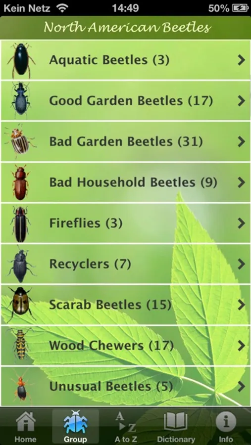 The app describes over one hundred species in more detail with several pictures for each beetle.