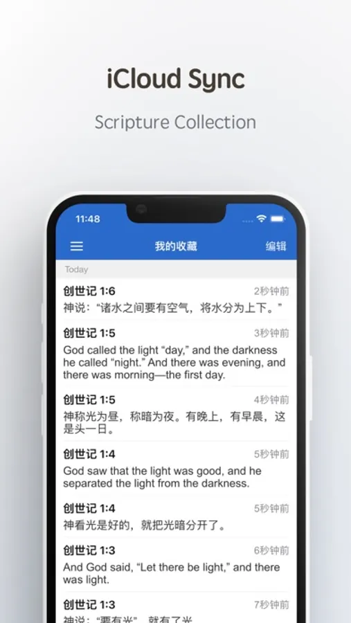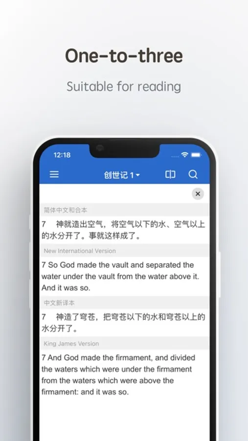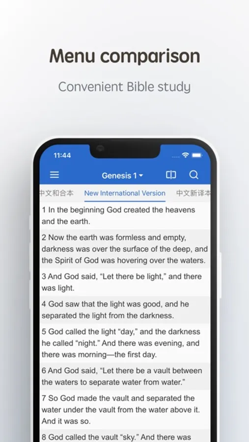 Menu comparison: support up to 7 versions, click the menu bar to switch between different Bible versions