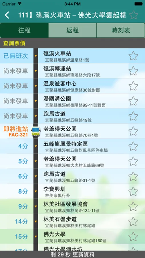 1.提供宜蘭縣公車即時動態資訊,快速查詢縣境內各路線公車預計抵達時間。