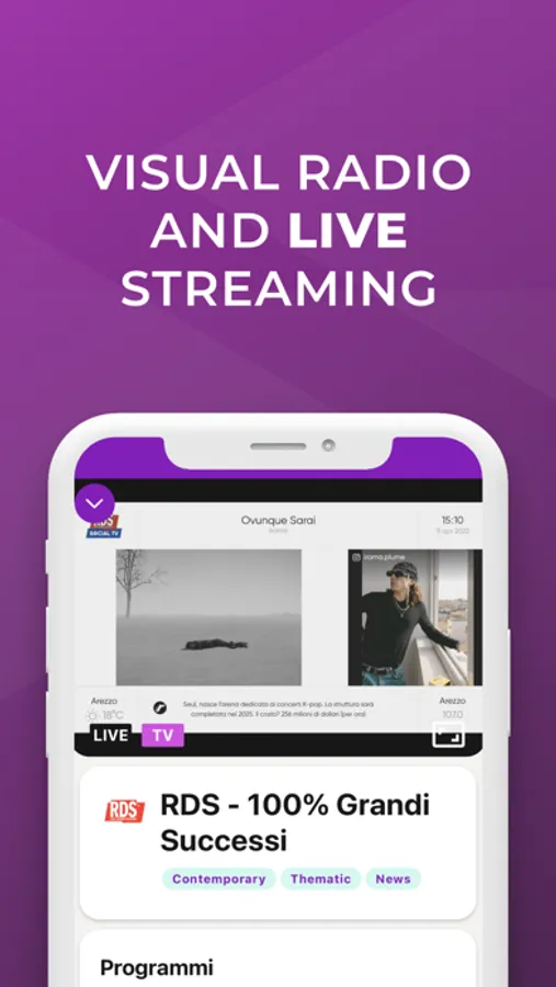 Follow your favorite speakers' shows whenever you want, watch the Visual radio with a simple tap on the app, in high quality and all in one app.