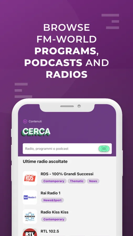 In addition to Italian stations listen also to the best radio from around the world thanks to a selection of the best international broadcasters.