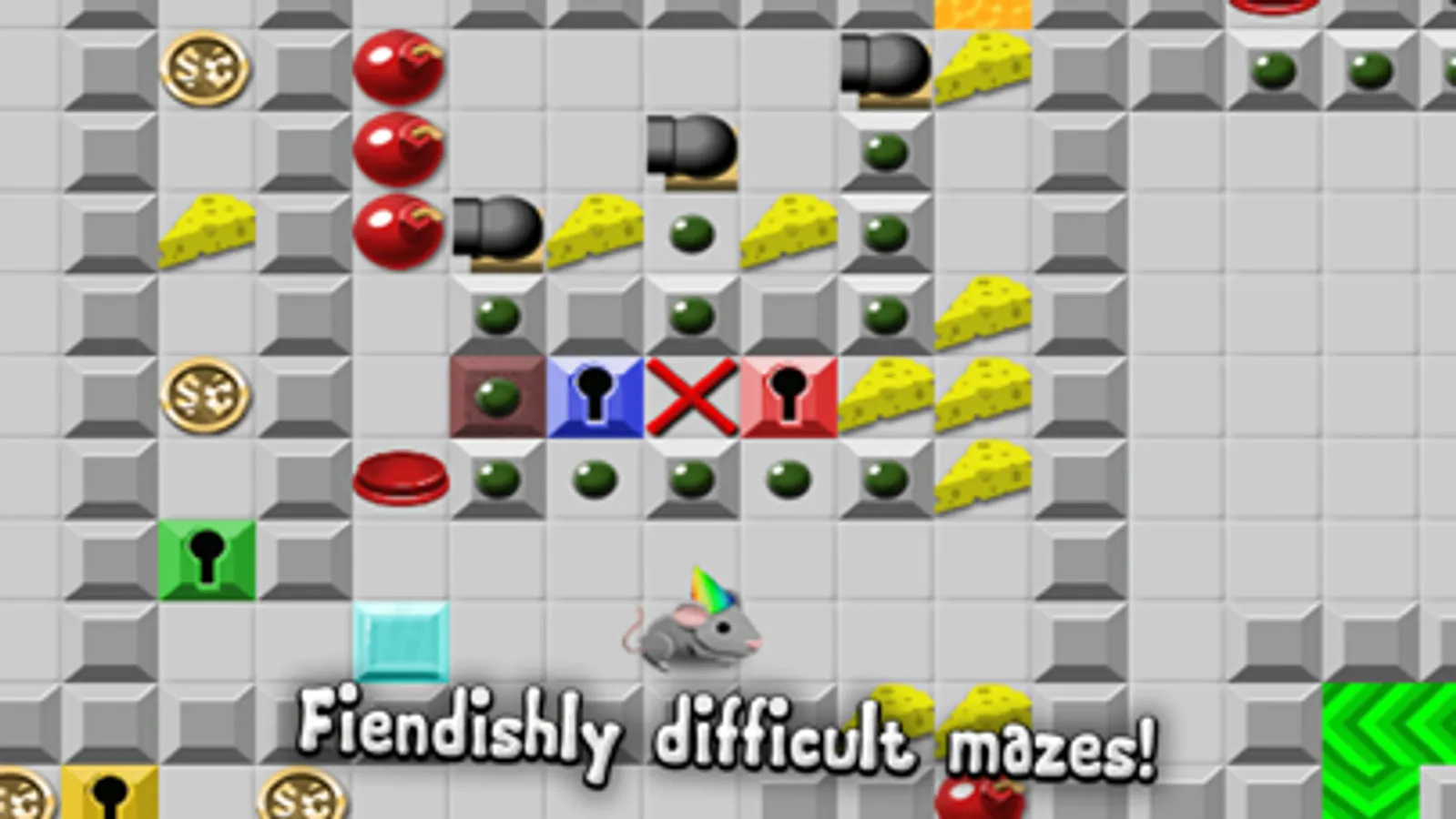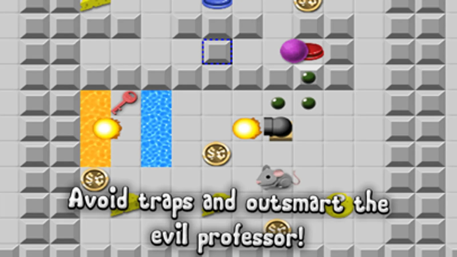 Poor little Muss the mouse has been abducted by a scientist madman! Help the little furball through mazes packed with dangerous lava pits, monstrous beetles, locked passages, magical potions, conveyor belts, and more on his brave quest for cheese and freedom!
