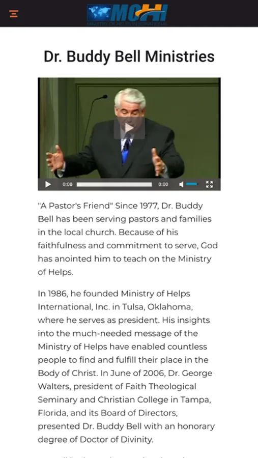 Explore videos and articles from Dr Buddy Bell, receive push notifications and much more from the MOHI | Ministry of Helps International app. The Ministry of Helps International is truly a Ministry That Helps The Local Church. Over 35 years ago, Dr. Buddy Bell obeyed the call of God to be a Pastor's Friend to Pastors. Through his travels across the globe, Dr. Bell has had the opportunity to teach on HELPS: Having Enough Loving People Serving in more than 3,000 churches. Dr. Bell has trained thousands of ushers and greeters thru the Serve Workshop and has held hundreds of Team Workshops around the world.