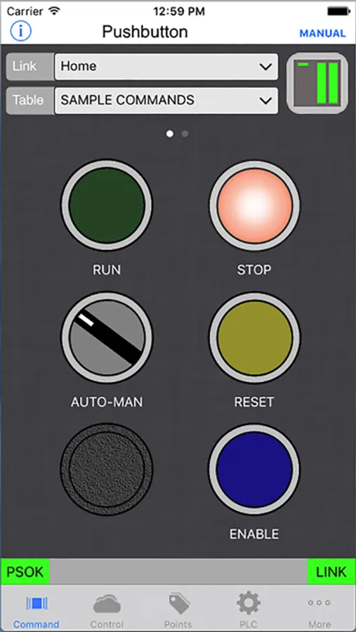 Manage a virtual push button for remote operations, with configurable I/O, for custom use.