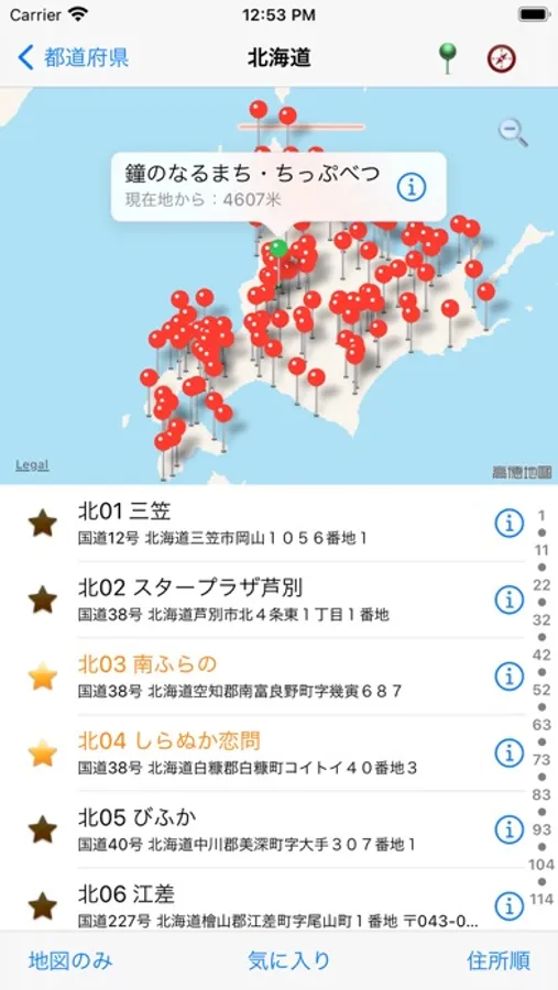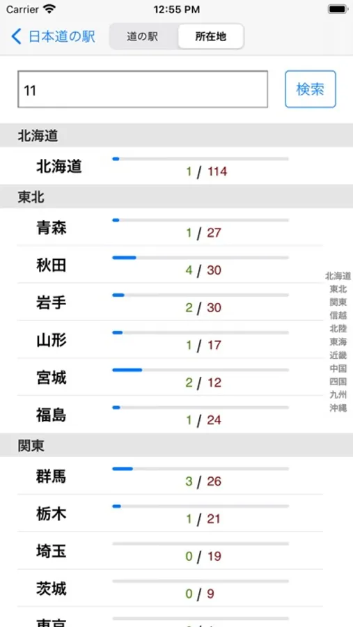 1、各都道府県、或は複数の都道府県の道の駅を表示、比較することができる。