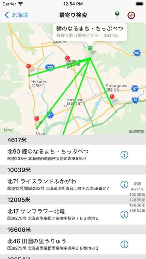 7、マップ中心を基に距離500~20000米以内の駅を昇順で表示することができます。