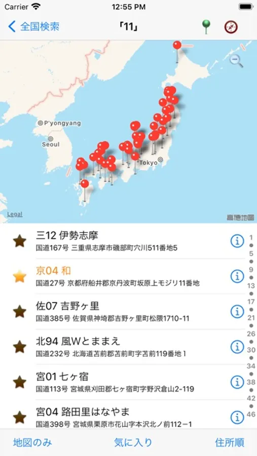 4、県内での気に入り情報、或は全国の気に入り情報検索も可能です。