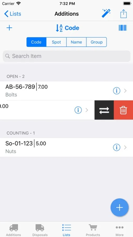 - Set of one count list to "standard", this list will be shown in first a tab after startup of the app. Fast counting of preferred list
